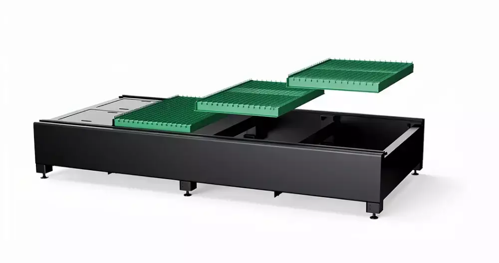 Модульная конструкция рабочего стола Сегментированная столешница с высокой несущей способностью и устойчивостью к вибрациям. Упрощенная эксплуатация: модули легко разбираются для очистки, замены расходных материалов или обслуживания. Увеличенный срок службы за счет быстрой замены изнашиваемых элементов.