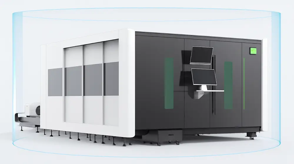 Полная кабинетная защита Закрытый корпус кабинетного типа гарантирует безопасность производства, полностью изолируя зону обработки и лазерное излучение.