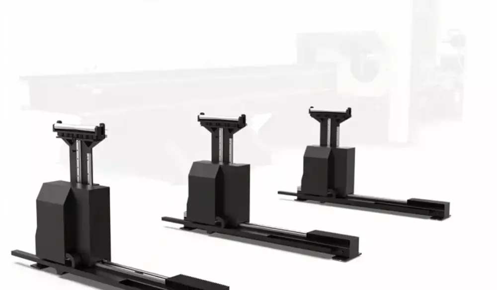 Система активной поддержки материала Оснащен дополнительной опорой для материала Позволяет регулировать высоту подъема в режиме реального времени Предотвращает раскачивание и провисание трубы Обеспечивает точность резки
