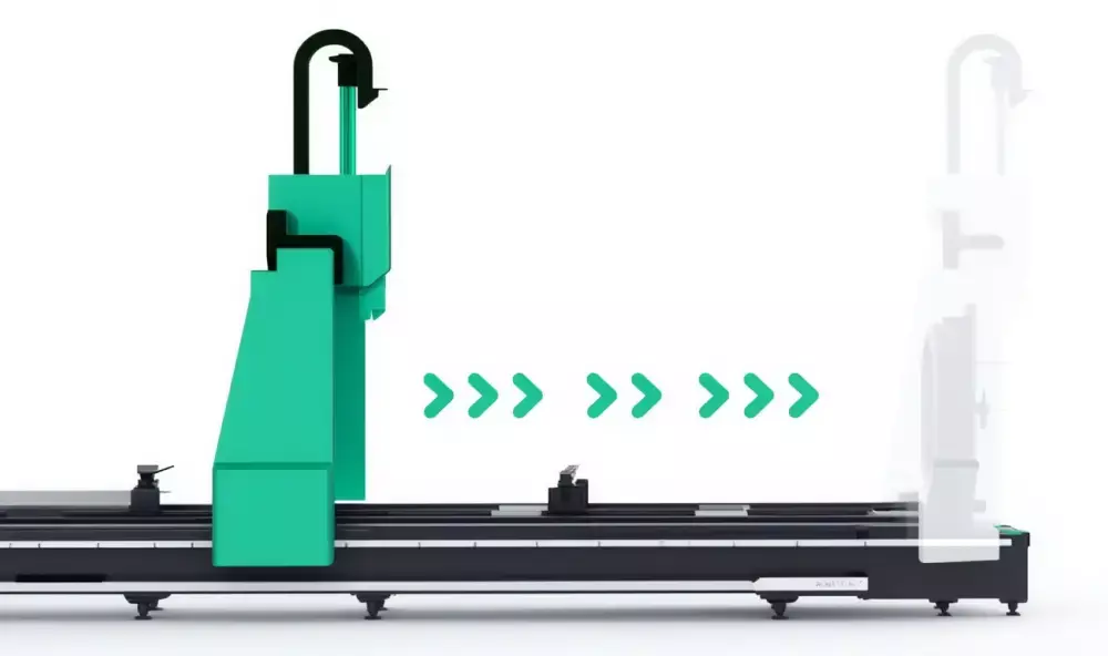 Передвижная портальная конструкция Сверхдлинный мобильный портал позволяет эффективно производить раскрой длинномерных заготовок протяженностью до 12 метров без потери точности позиционирования.