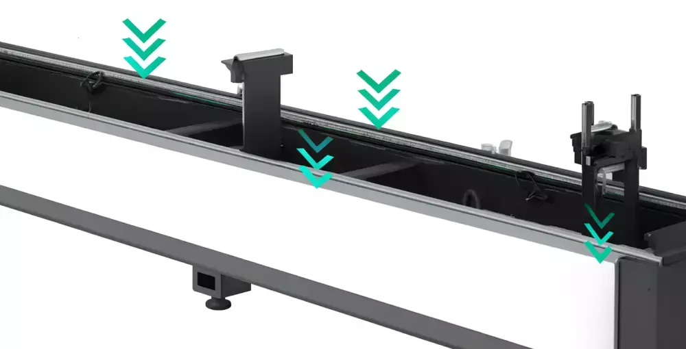Цельносварная конструкция из холоднокатаной стали обладает повышенной жесткостью и долговечностью, сохраняя точность оборудования при интенсивных нагрузках.